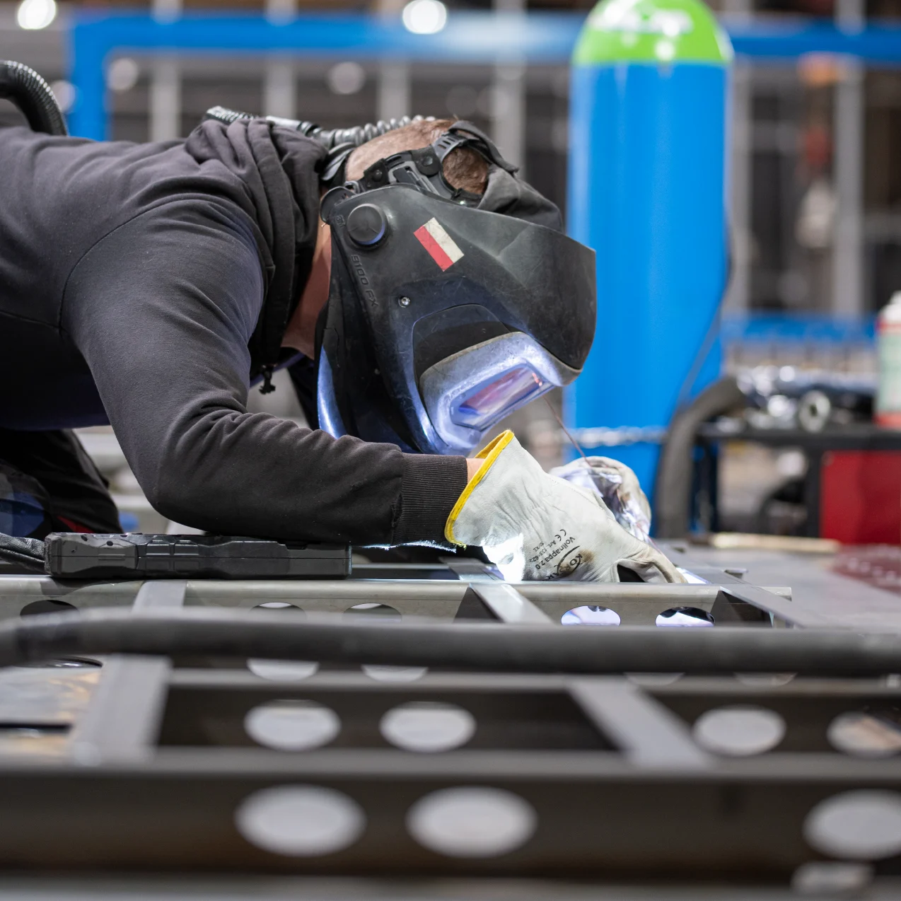 Als Konstruktionsmechaniker/in arbeitest Du mit metallischen Werkstoffen wie Stahl und Aluminium und fertigst daraus Bauteile und Konstruktionen. In der Fachrichtung Schweißtechnik verbindest Du Werkstoffe manuell und mit modernsten, automatisierten Anlagen – von klassischen Schweißgeräten bis zu computergesteuerten Systemen.